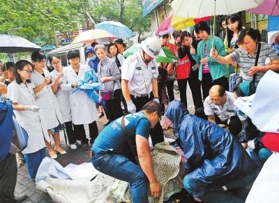 “快!找個衣服給孩子蓋住。”不知誰喊了一聲。由于下雨天冷,光溜溜的小家伙凍得渾身發(fā)紫。話音剛落,沿街門店的商戶楊女士健步如飛,回到店里把自家孩子的毛毯拿過來,熱心市民有的還把衣服脫掉……毛巾、毛毯、衣服從人縫里送進來,一層又一層地裹住嬰兒。當120急救車趕到現(xiàn)場,眾人把產(chǎn)婦抬上了救護車,所有人長長地出了口氣。