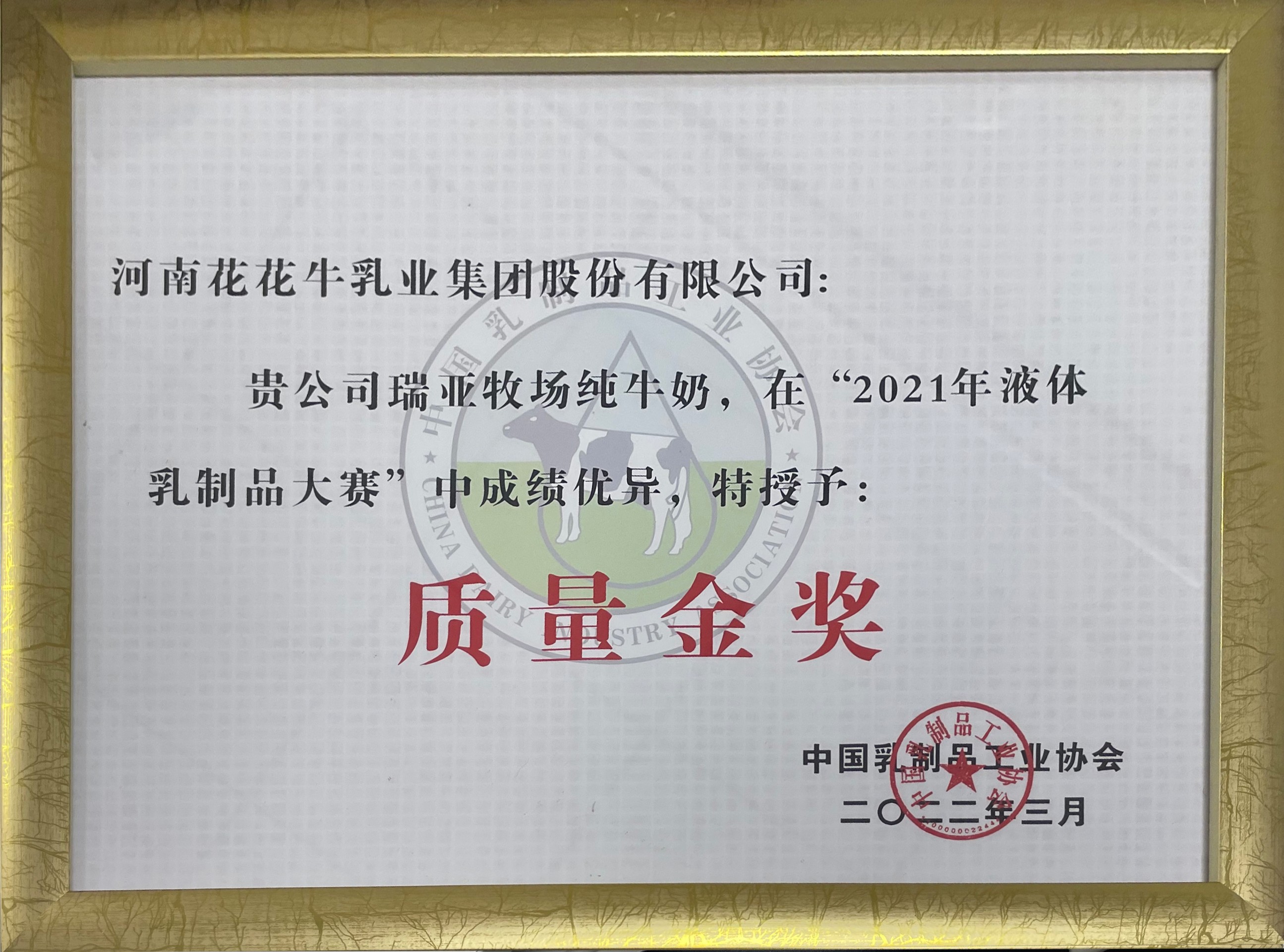 • 瑞亞牧場純牛奶 ——“2021年液體乳制品質(zhì)量大賽”質(zhì)量金獎
