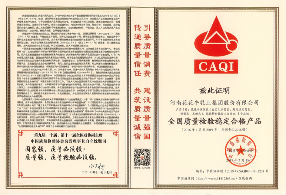 • 全國乳品行業(yè)質(zhì)量領(lǐng)先企業(yè)